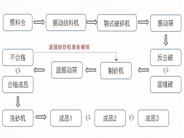 將石頭加工成砂的主要設(shè)備有顎式破碎機(jī)(用于一次破碎)、圓錐破碎機(jī)或反擊式破碎機(jī)(用于二次破碎)、制砂機(jī)(用于制砂)、洗砂機(jī)(用于提高砂的潔凈度)以及篩分、皮帶機(jī)等其他輔助設(shè)備。
